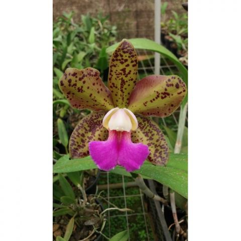 Orquídea híbrida obtida pela autopolinização do híbrido Cattleya Kerchoviana x Cattleya Barbantiae, orquídea pintalgada de alta qualidade.
