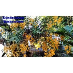 Orquídea epífita de flores amarelas com labelo preto.