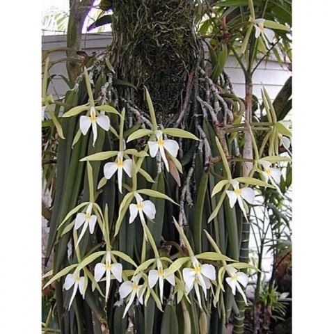 Orquídea epífita de flores brancas.