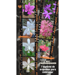 O kit contém 7 mudas pequenas de orquídeas raras: